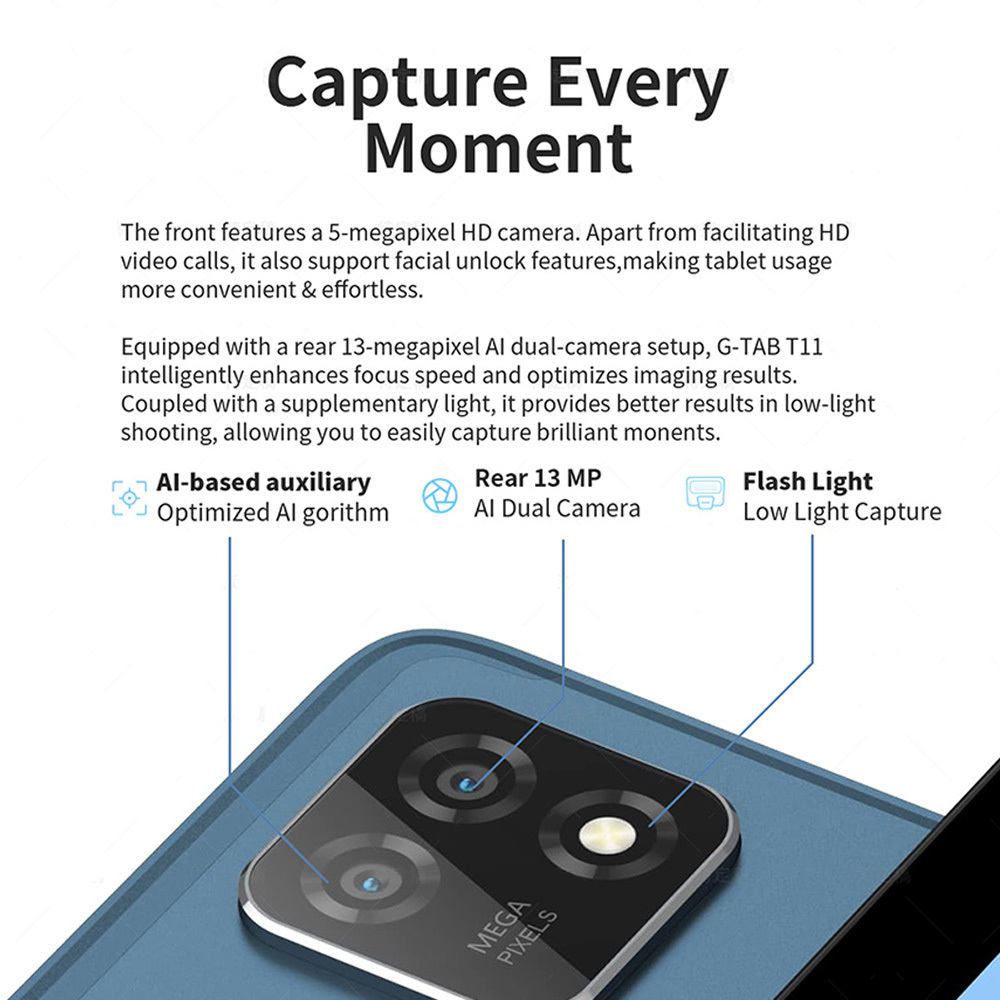 With a 6580mAh battery capacity, the G-Tab T11 10.1-inch Tablet provides extended usage time, allowing you to stay productive and entertained throughout the day.